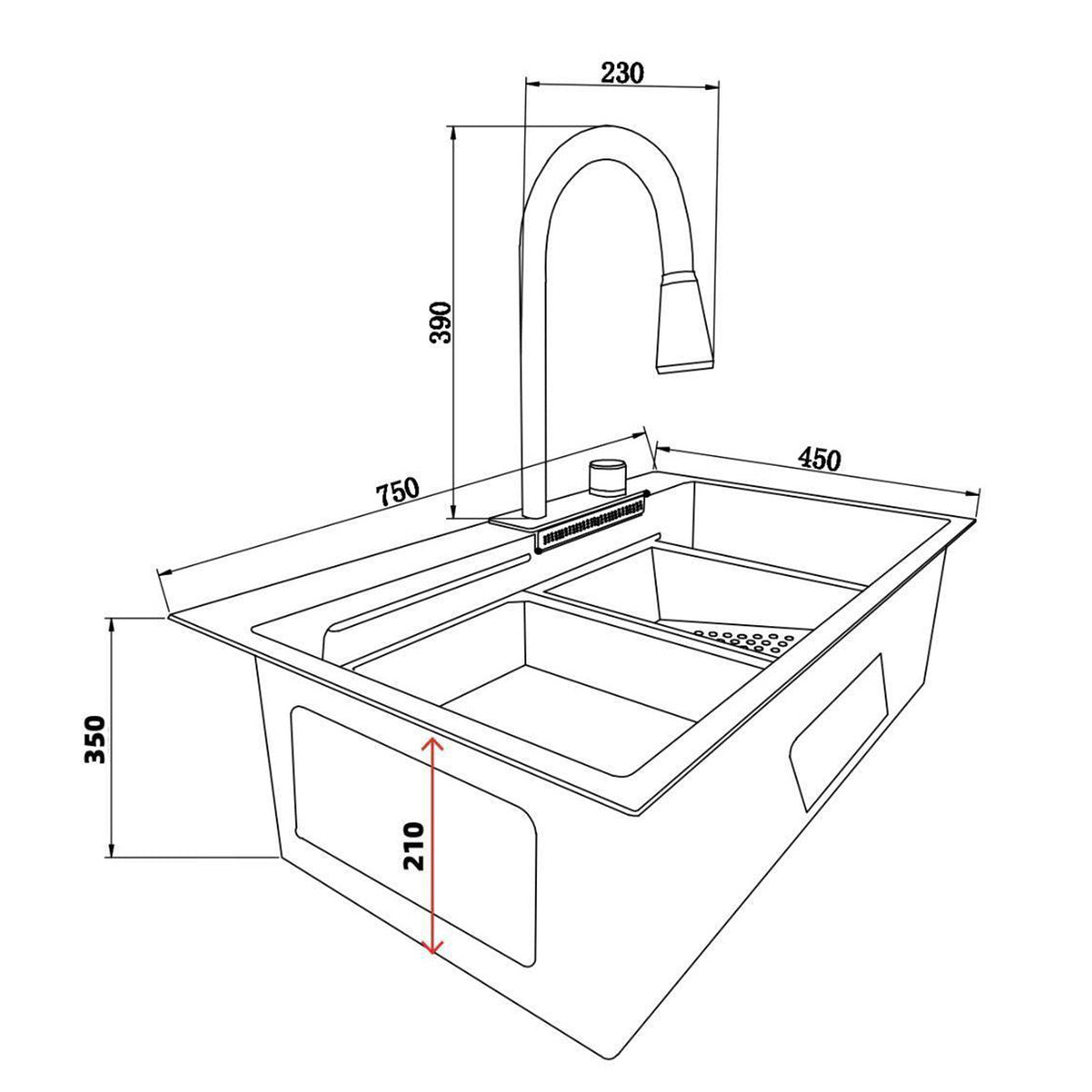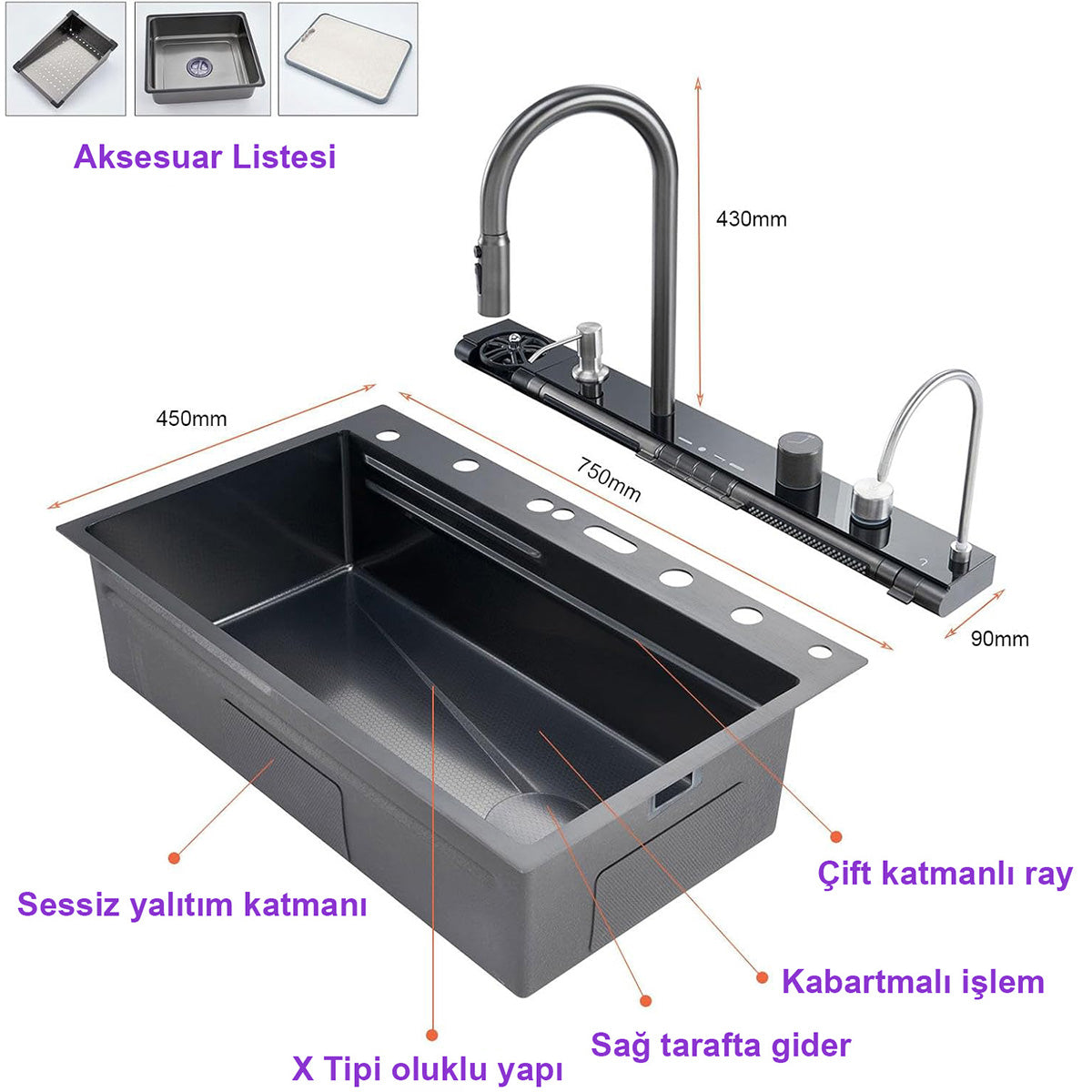 750x450 mm ölçülerindeki bu eviye, mutfakta maksimum alan kullanımı ve işlevsellik sağlar. Sağ yan gider ve çift katmanlı ray sistemi ile donatılmıştır.