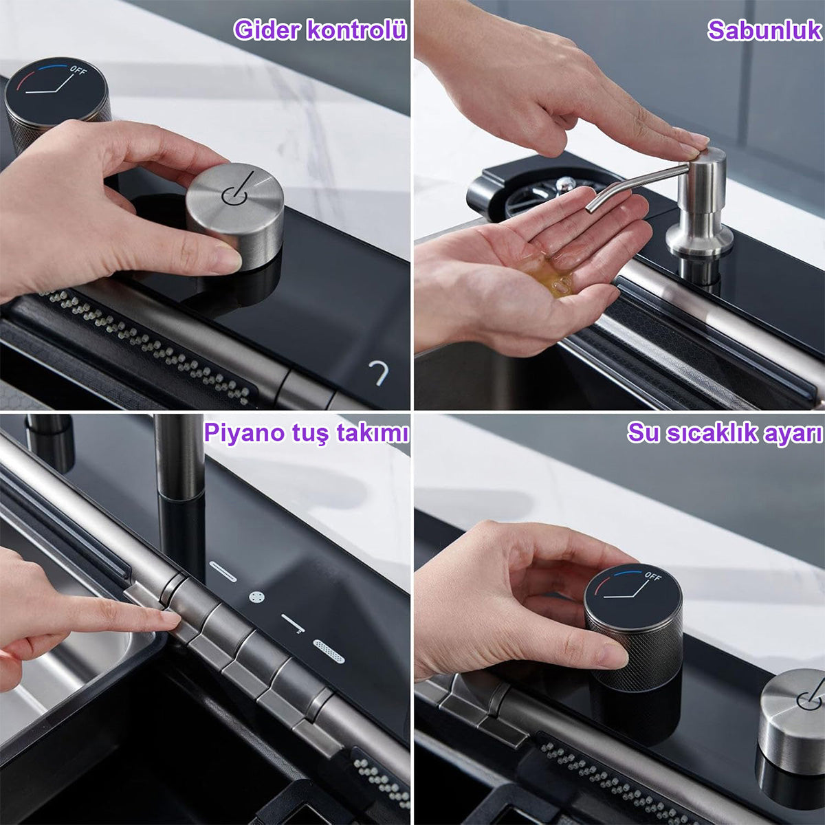 Gider kontrolü, entegre sabunluk, piyanoya benzeyen tuş sistemi ve hassas sıcaklık ayarıyla mutfağınızda teknolojiyle buluşun.