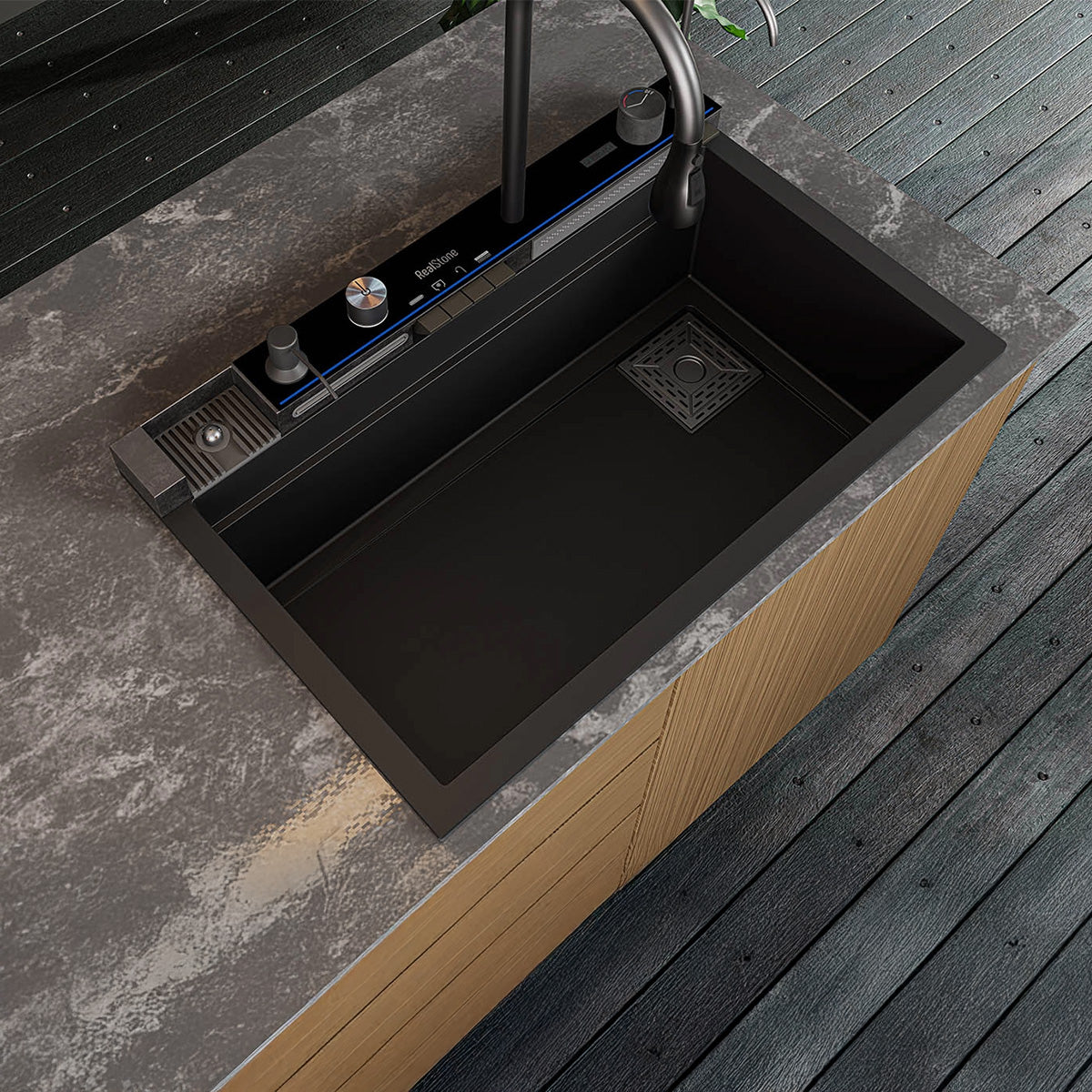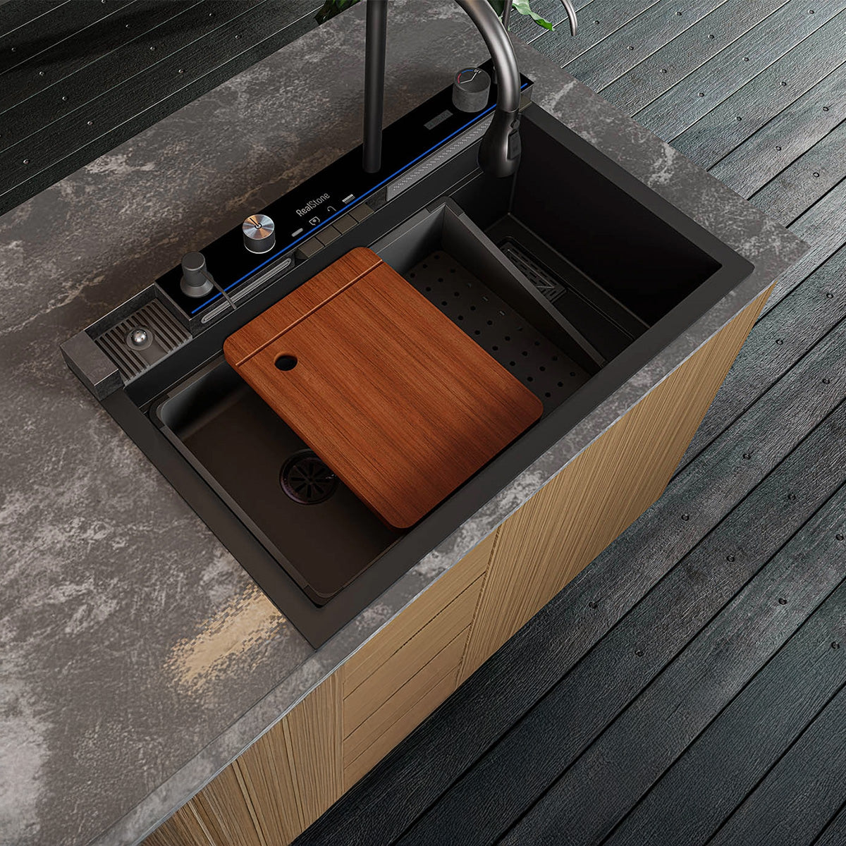 Real Stone Victoria Granit Akıllı Eviye Seti Antrasit 77.5X47 cm