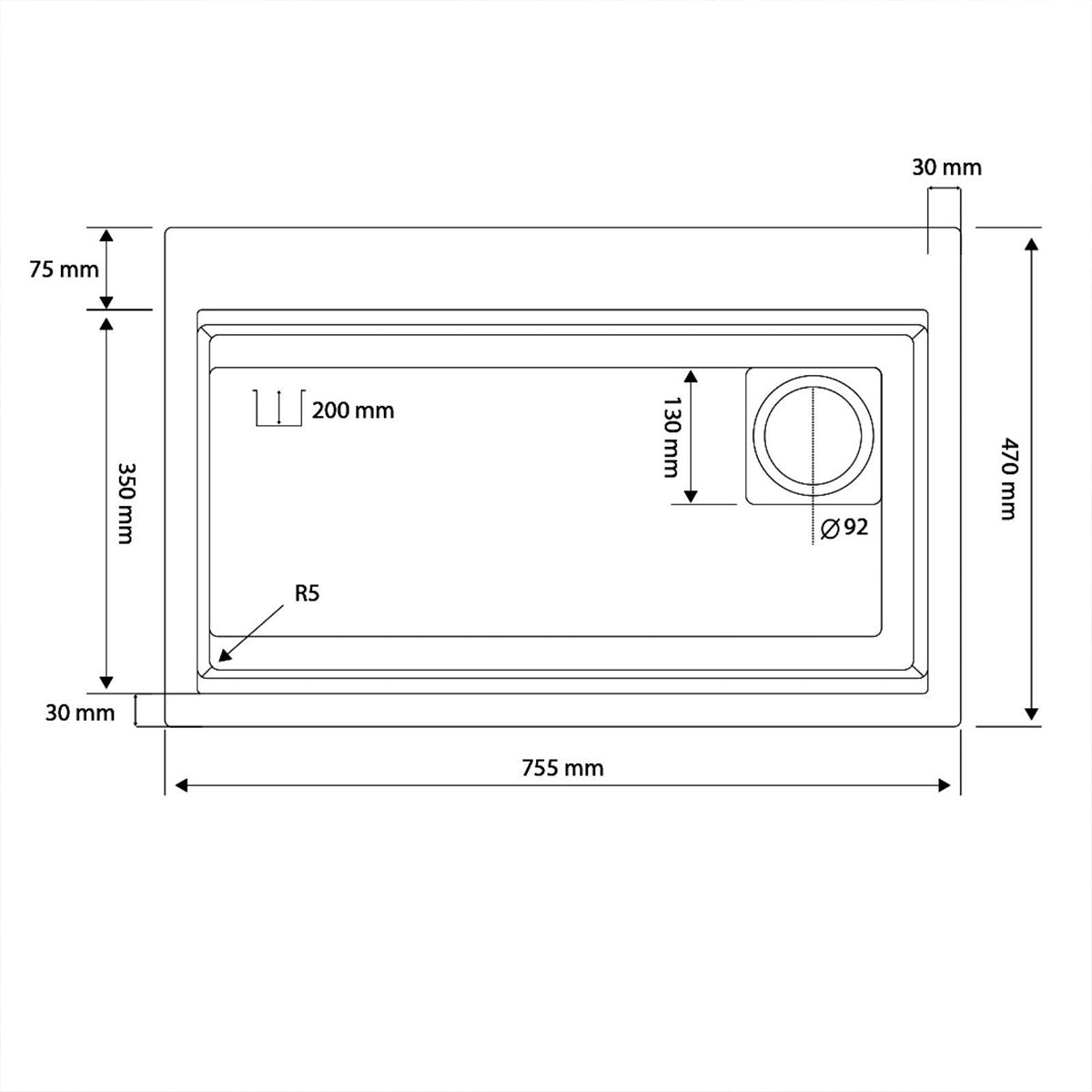Standart Ø92 mm gider çapı ve R5 köşe yapısıyla hem şık hem kolay temizlenebilir bir kullanım sunar.