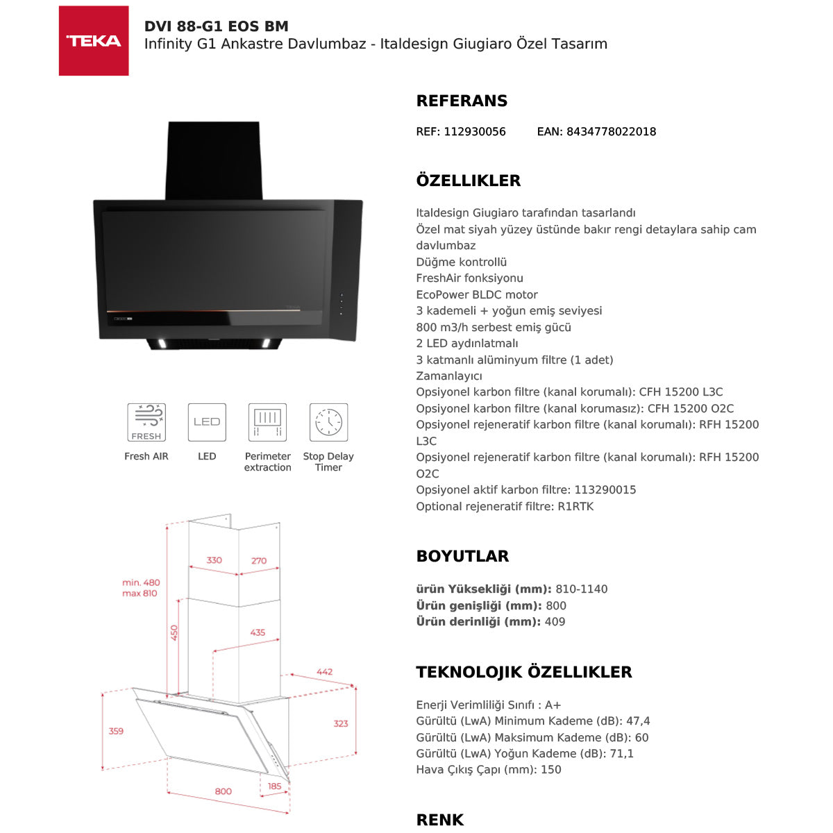 Teka DVI 88-G1 EOS BM Siyah Davlumbaz - Infinity G1 Ankastre Davlumbaz