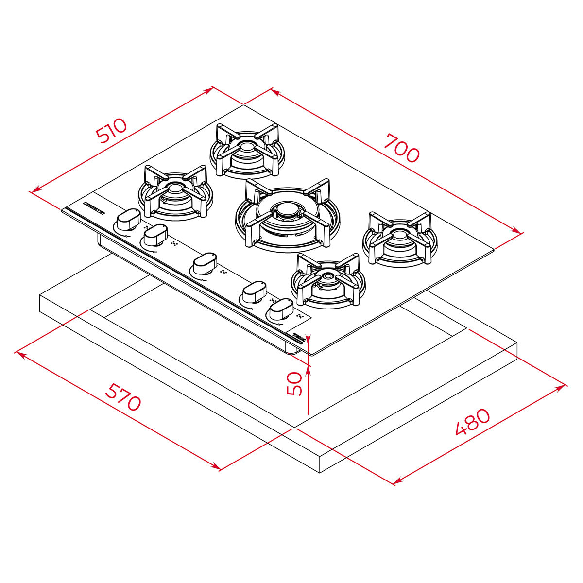 Teka GBC 75-G1 GB Infinity G1 70 cm Cam Gazlı Ocak - Italdesign Giugiaro Özel Tasarım