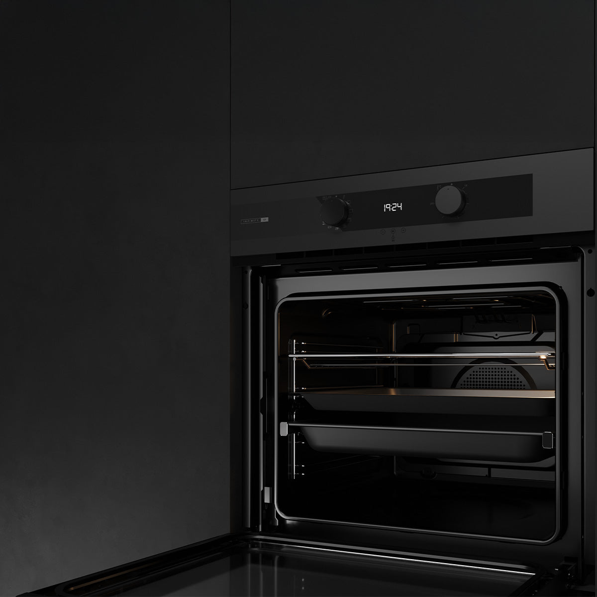 • Özel mat siyah yüzey üstünde bakır rengi detaylara sahip MaestroPizza fırın